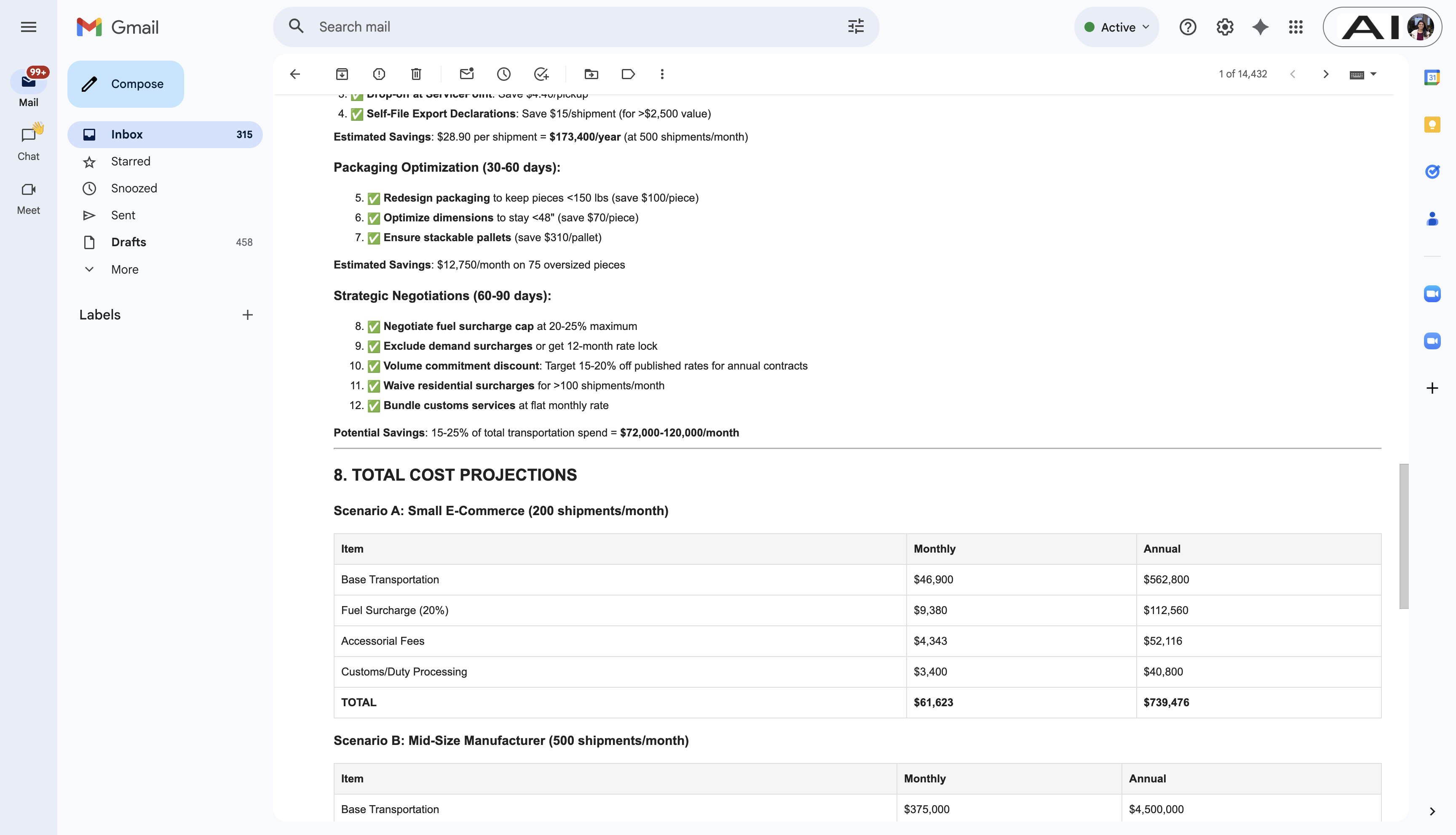 Athena can also send emails with files created during the workflow run as attachments to the response email.